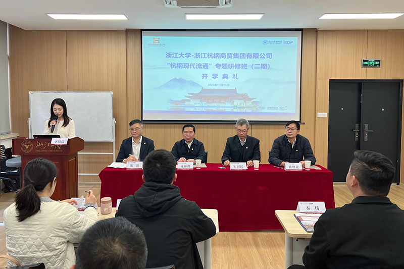 11月15日,浙江大學(xué)——浙江杭鋼商貿(mào)集團(tuán)有限公司“杭鋼現(xiàn)代流通”專題研修班(二期)開班儀式在浙江大學(xué)西溪校區(qū)舉行。杭鋼集團(tuán)黨委委員、副總經(jīng)理孔祥勝,浙江大學(xué)管理學(xué)院EDP中心常務(wù)副主任宋國民,冶金物資黨委書記、董事長鄭浩,商貿(mào)集團(tuán)有限公司副總經(jīng)理、執(zhí)行董事蔣緒斌等出席開班儀式。商貿(mào)集團(tuán)55名中高層管理干部及部分骨干參加培訓(xùn)。